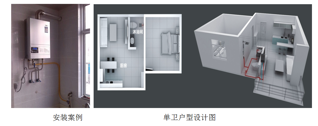 此户型一般出水点为1-2个,浴室洗手盆龙头+浴室花洒,浴室的空间有限,热水器的外形尺寸应尽量小一些