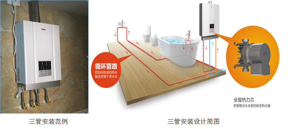 热水器安装材料会根据安装场所的管路布局不同而有所差别,以安装X7中央热水系统为例,未预留热水循环管路的安装户型(双管布局),在安装时须加装随机配件easy热力门,而安装easy热力门也会增加相应的管路配件,因此所需的安装费用相对三管安装有所增加。
