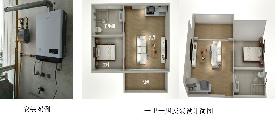 此户型用水点一般为3个,此种户型的客厅阳台是热水器的最佳安装位置。