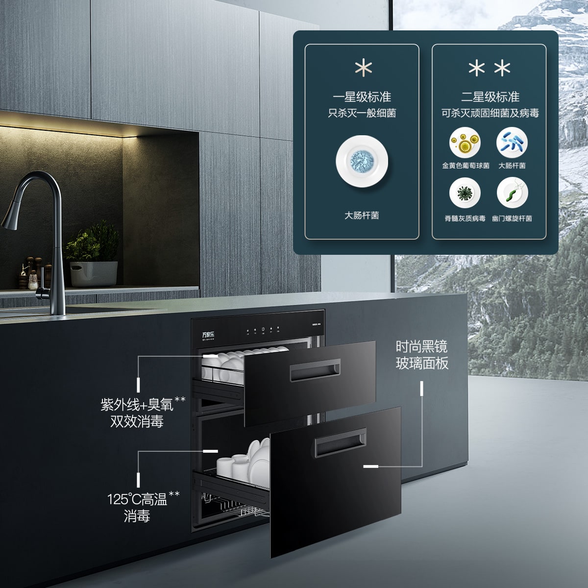 低温二星消毒,针对不耐热厨具而设。